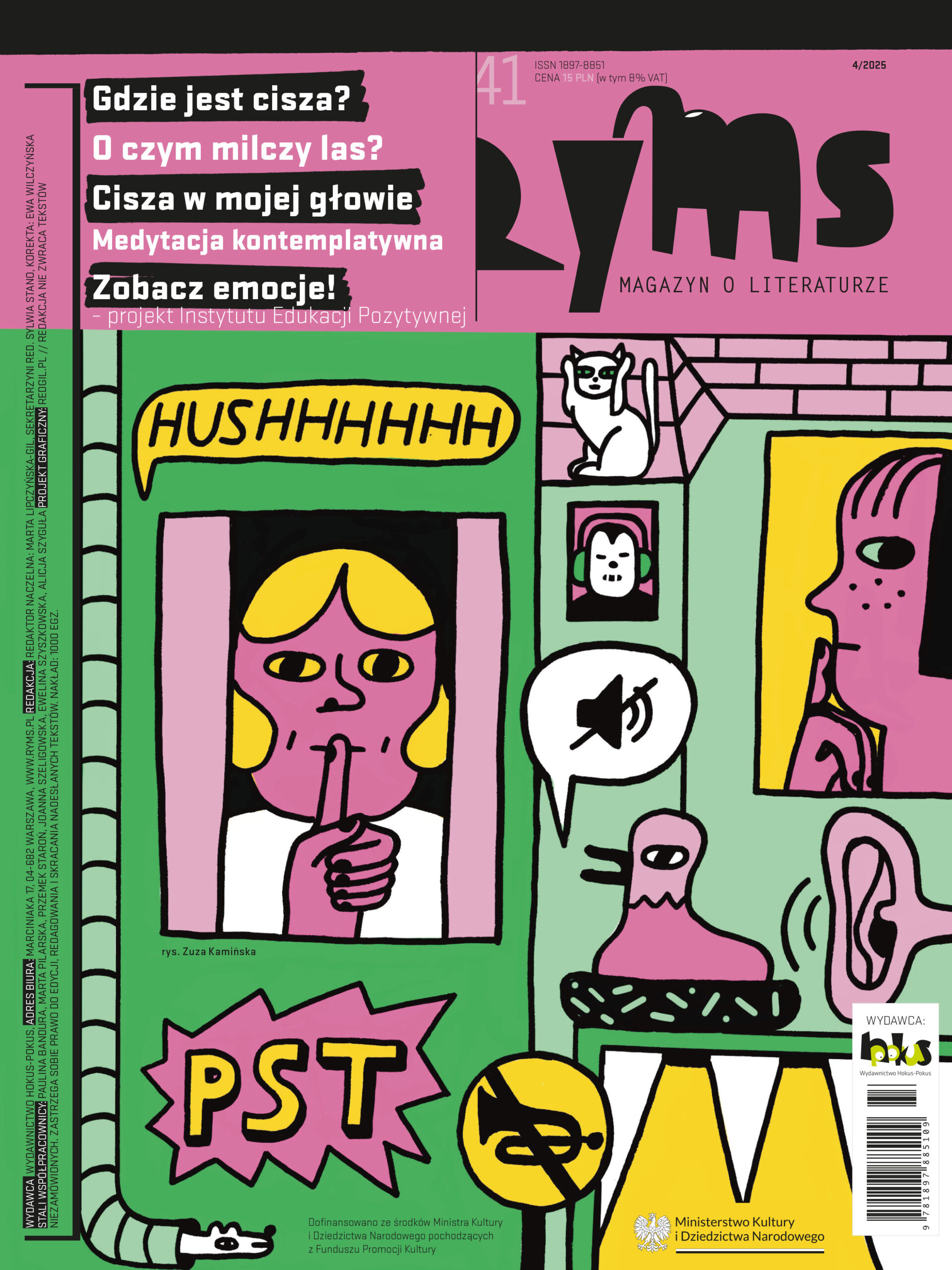 Naczelna – Marta Lipczyńska-Gil rozmawiała z Anną Nowacką-Devillard – przewodniczącą Sekcji Wydawnictw Książek dla Dzieci i Młodzieży przy Polskiej Izbie Książki o działach PIK oraz sekcji. Następnie sekretarzyni redakcji – Sylwia Stano porozmawiała z Martą o nowym numerze, którego tematem przewodnim jest cisza.